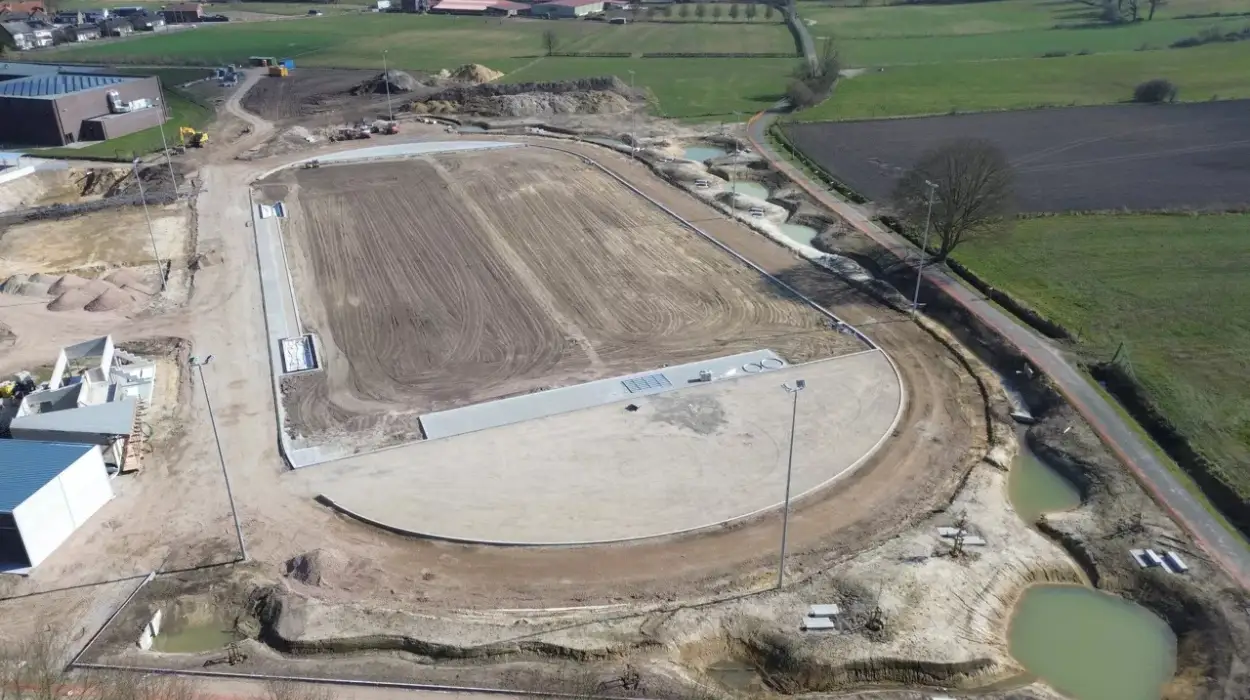 Construction of “De Weeg,” a new sports complex, swimming pool, and residential tower, is set to begin on the former hospital site in Bree. The construction timeline for this project extends to three consecutive years, including both the current athletics track work and future stages. The project development is a joint work between the KOSM school community, the Women in Limburg (WiL) housing organisation, and the local government. The project functions to replace old facilities by constructing contemporary infrastructure throughout the community.