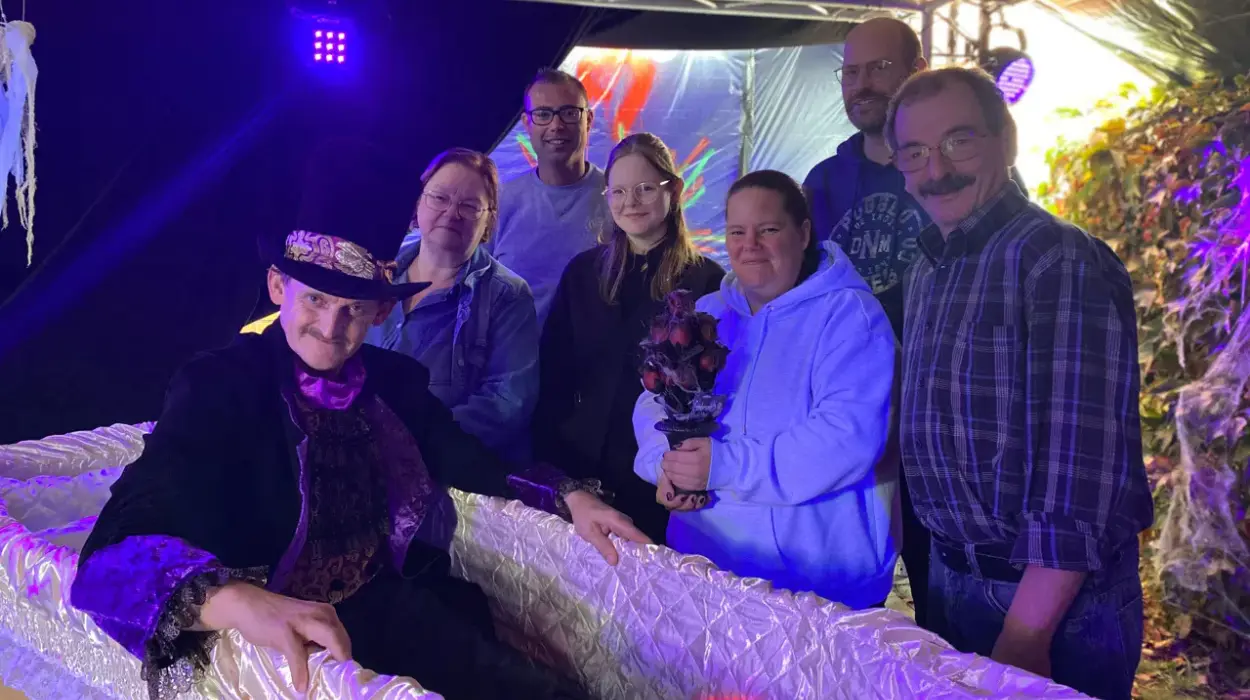 It has been said that for Halloween fun, visit Blankenbergsesteenweg in Bruges, where Karolien and her family have created a spooky attraction. The house features scary decorations both inside and outside. The highlight is a tent with a coffin, where Count Dracula will soon be waiting to surprise visitors who dare to enter.